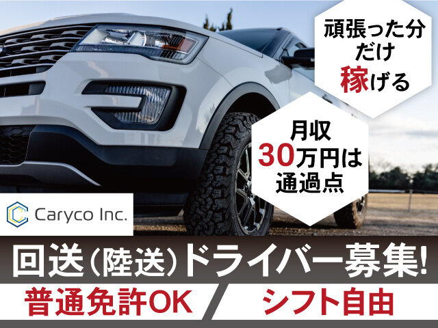 - 月給300,000円 ~ 月給300,000円〜 ※週5日勤務で1日3~4台輸送の場合の目安 30万円は通過点です!運んだ分だけ報酬UP!! ※完全出来高制(最大月収40万円以上可能です) ・報奨金制度有! 週4日・週3日・週2日・週1日など ご自身のペースで働きたい方は別途ご相談ください。 希望の収入に合わせた働き方も相談が出来ます 収入例 (週1日、1日2台の回送の場合) 月収4万円 (週2日、1日2台~3台の回送の場合) 月収9万円 (週3日、1日2台~3台の回送の場合) 月収15万円 (週4日、1日3台の回送の場合) 月収20万円 ※コースや働き方により収入が異なる為、詳細はご相談ください