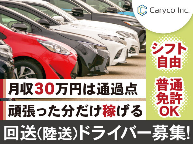 - 月給300,000円 ~ 月給300,000円〜 ※週5日勤務で1日3~4台輸送の場合の目安 30万円は通過点です!運んだ分だけ報酬UP!! ※完全出来高制(最大月収40万円以上可能です) ・報奨金制度有! 週4日・週3日・週2日・週1日など ご自身のペースで働きたい方は別途ご相談ください。 希望の収入に合わせた働き方も相談が出来ます 収入例 (週1日、1日2台の回送の場合) 月収4万円 (週2日、1日2台~3台の回送の場合) 月収9万円 (週3日、1日2台~3台の回送の場合) 月収15万円 (週4日、1日3台の回送の場合) 月収20万円 ※コースや働き方により収入が異なる為、詳細はご相談ください