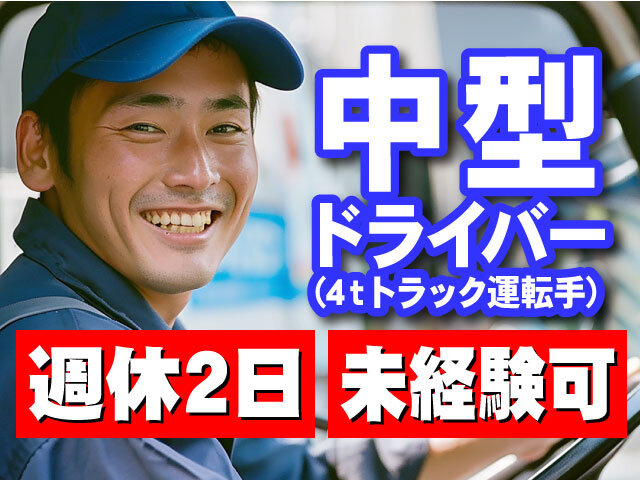 正夜間配送でストレスフリーな中型車ドライバー 未経験者も安心の同乗研修有/勤務時間応相談/週休2日制