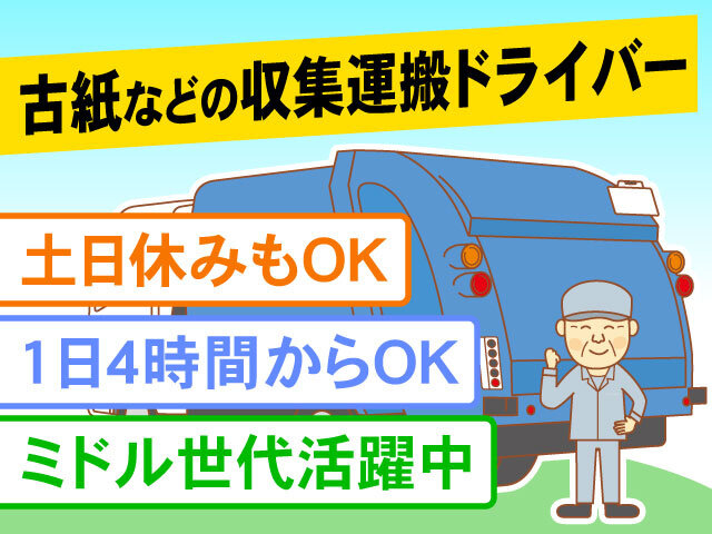 アパ前橋市/アルバイト/古紙などの収集運搬作業 4時間から勤務可/未経験OK/ミドルOK