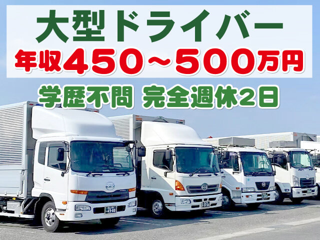 正日勤/大型ドライバー 年収450万円~500万円 学歴不問/完全週休2日 20代~60代の方、活躍中