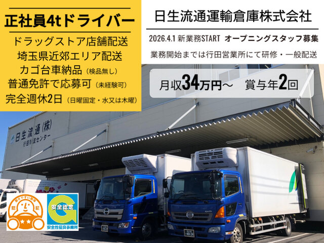正2026年4月1日スタート/オープニング募集 ドラッグストア店舗配送ドライバー カゴ車納品で負担減