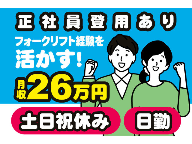 派日勤・土日祝休みで月収26万円可能!直接雇用も目指せる! フォークリフト実務経験が活かせる!