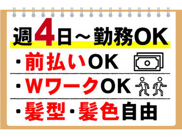 派初心者も大歓迎、1日4時間の短時間勤務など、好きな時間帯選べます。週4日~OKで完全週休2日制