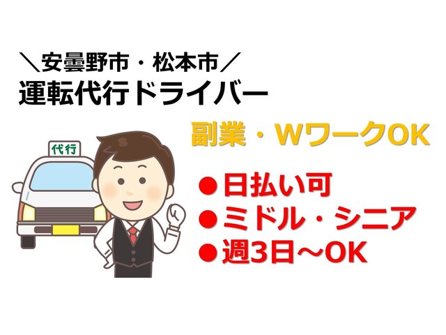 アパ【運転代行の経験問いません】安曇野市・松本市エリア/週3日~OK!日払い可!免許活かせます!