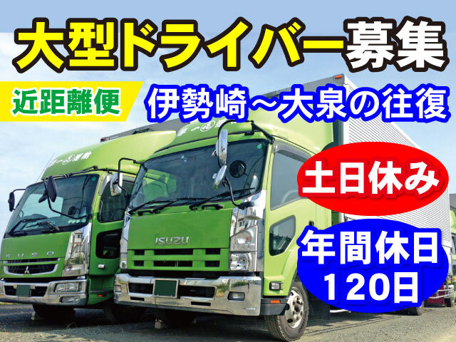 正伊勢崎市/大型ドライバー/土日休み/年間休日120日/幅広い年代活躍中