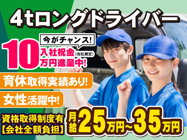正\運転好き集まれ!/ 安定収入!4tドライバー募集!働きやすい環境で長期活躍!未経験から正社員へ!