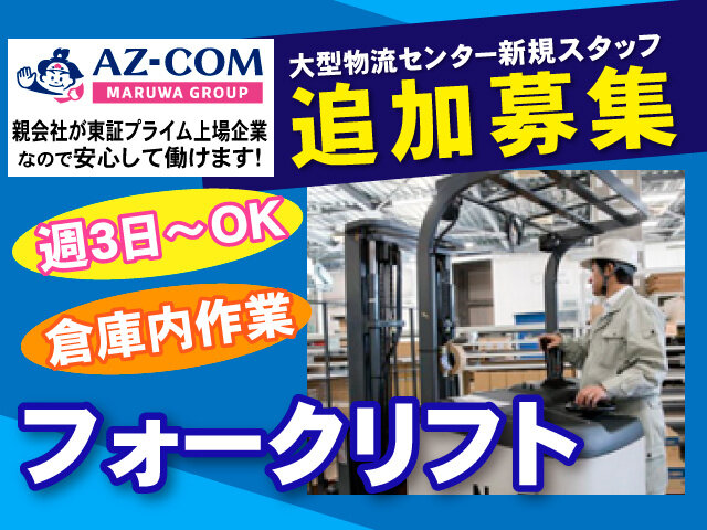 契未経験OK/日払いOK/土日休み/物流倉庫/フォークリフトで入出荷作業/マイカー通勤OK