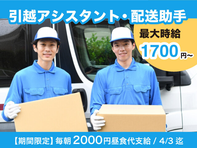 アパ<時給1,700円~> 毎日嬉しい日払い制! シフトもめっちゃ自由の登録制引越し作業アルバイト募集