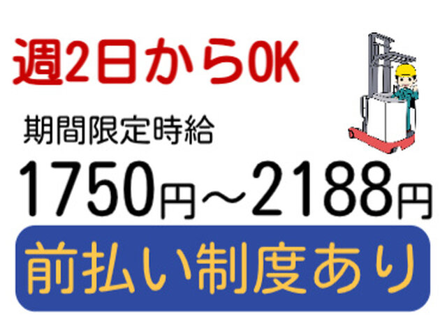 派履歴書不要。大幅増員による大募集 リーチフォークリフト作業 週2日~OKで日勤のみ!未経験大歓迎