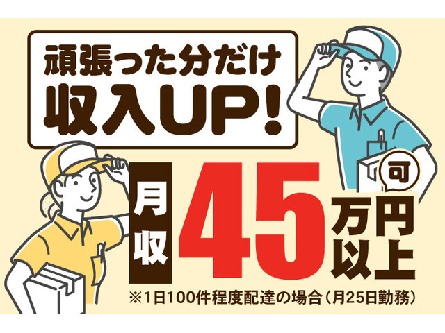 - 月給250,000円~500,000円 配達個数による完全出来高制 【月収例】25万円~50万円以上も可能