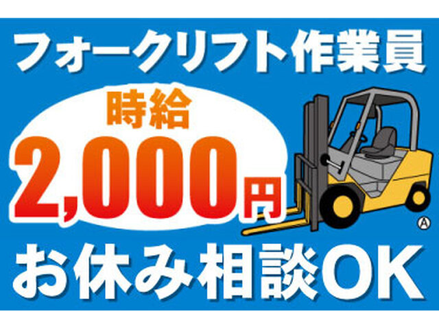 派安全第一で働こう!日勤専属でも稼げるフォークリフター募集。職場見学OK、車通勤OK、前払いOK
