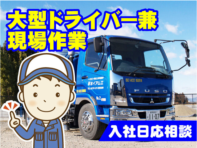 正【伊勢崎市/正社員】大型ドライバー兼現場作業/残業ほぼなし/週休2日/土曜午後+日祝休み/賞与年2回