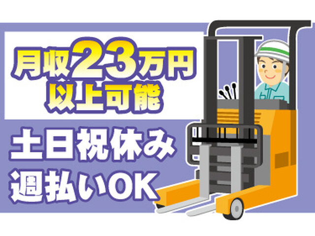 派週3日からOK、選べる時間帯。日勤専属でも稼げるフォークリフター募集。職場見学OK、車通勤OK