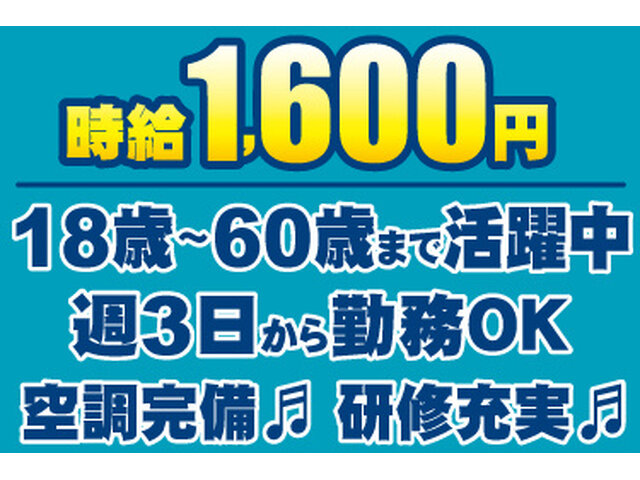 - 時給1,400円~1,750円 ※研修期間(最長3ヵ月)有※ゆっくり覚えてください♪ ★週払い・月払いも可 ※現金支給・銀行振込から選べます。